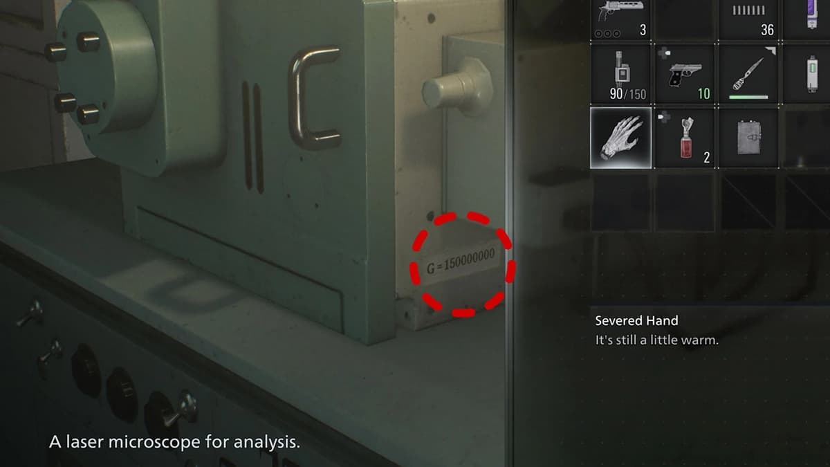 Третья подсказка вообще была у тебя перед носом с самого начала. На корпусе лазерного микроскопа в лаборатории крови Восточного крыла есть маленькая наклейка, которую легко не заметить: «Г = 150 000 000».