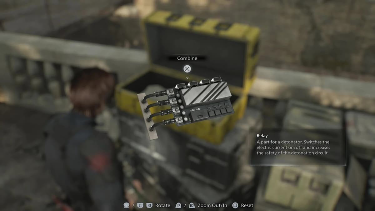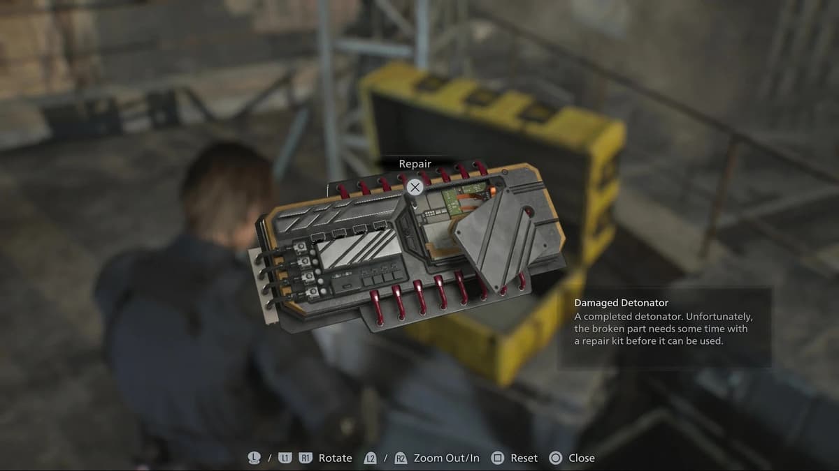 Если у тебя уже есть все три части бомбы — когда подберёшь приёмник, Леон соберёт детонатор. Но он сломан — надо чинить.