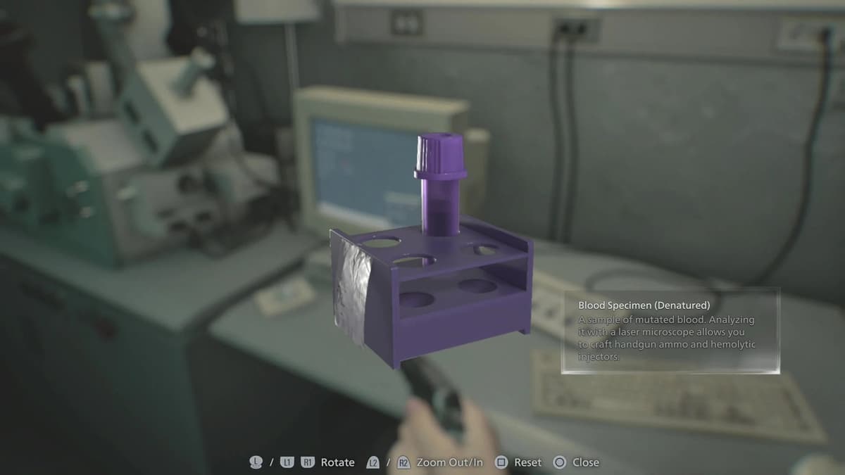 С помощью ID-браслета первого уровня открой подсобку в Лаборатории крови. Внутри найдёшь образец.