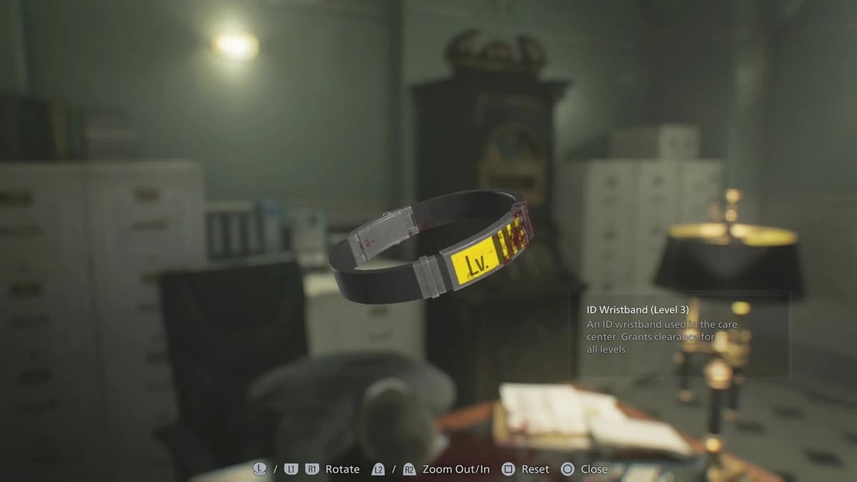 Иди в Кабинет S.T.A.R.S. на втором этаже. Осмотри кожаную куртку на стене и шкаф у двери — там две подсказки. Теперь возвращайся в Командный центр на первом этаже, залезай на паллеты у доски и снимай ключ с крепления для телевизора под потолком. В шкафчике в Западном офисе найдёшь уникальный оберег для Леона.