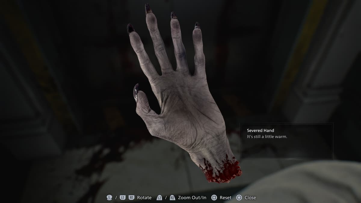 Как выйдешь из лифта в подвале, посмотри на пол возле лифтовой шахты. Рука там. Для сюжета не нужна, но пригодится для Финальной головоломки.