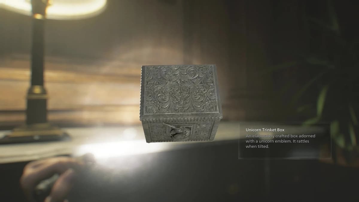 В инвентаре покрути Шкатулку с единорогом. Сзади найдёшь кнопку — нажми, и самоцвет выпадет.