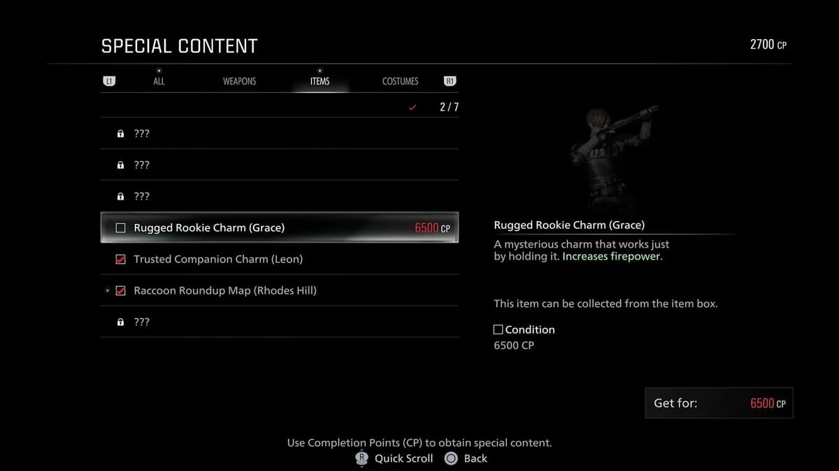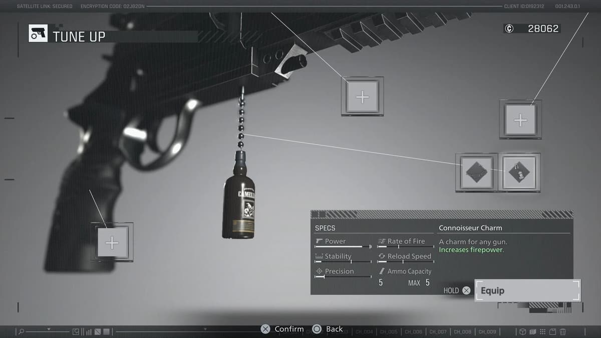 У Леона мороки больше: каждое Украшение надо повесить на конкретную пушку (через инвентарь или в Ящике с припасами). Слот на оружии один, и брелок можно использовать только на одном стволе. При первом прохождении игры тюнинг открыт не везде, но на втором прохождении ящики появляются по всей карте — разработчики явно поощряют Новую Игру +.