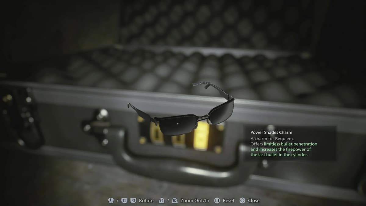 Возвращайся в Кабинет S.T.A.R.S, в старом шкафу с оборудованием лежит кейс. Вводи код RRR — и модные очки Альберта Вескера твои. Квест несложный, но без гайда можно и не догадаться про второй клик по пустому ящику.