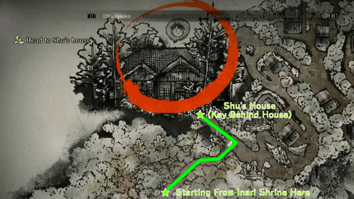 Направляйся к дому Шу — он расположен севернее ближайшего святилища. Главный вход заперт — обходи сзади, открывай сарай и подбирай ключ. Там же лежат важные записки — не пропусти. Вернись к двери и открой дом.