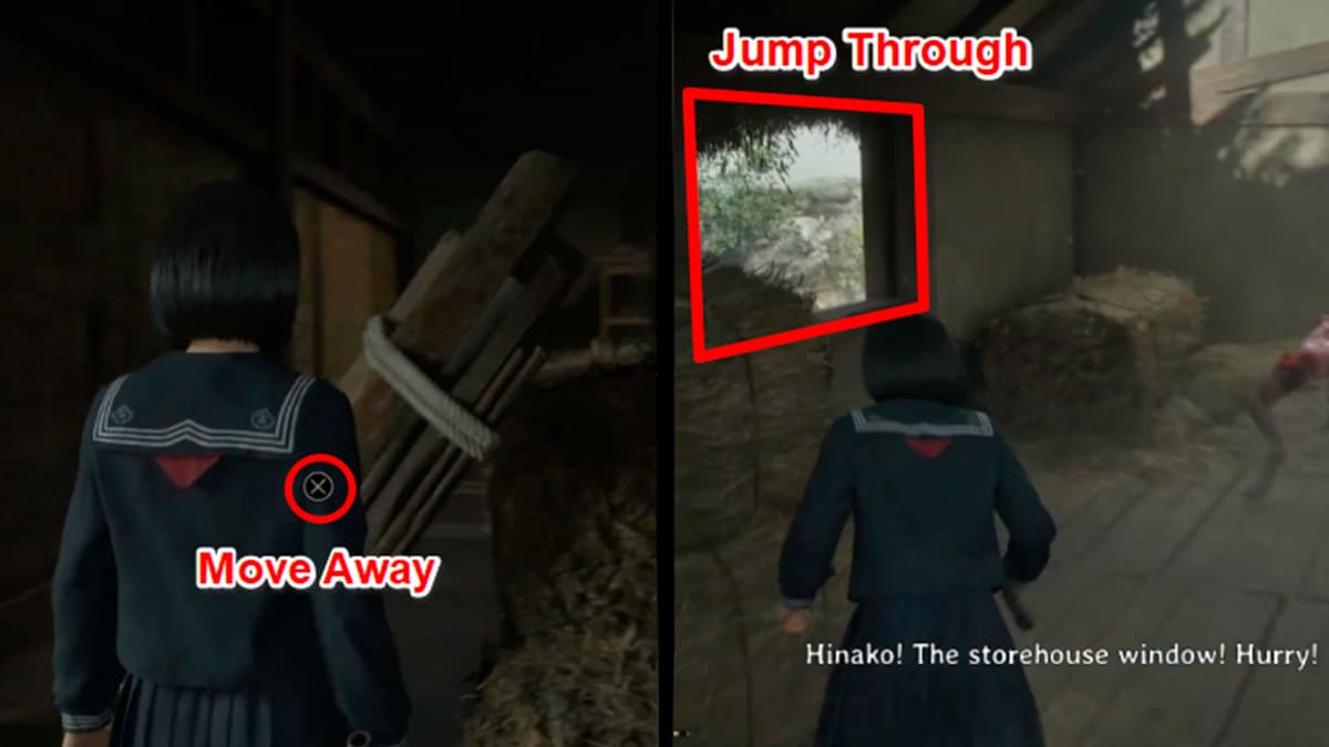 Открой замок кладовой найденным ключом. Слева лежат сколоченные доски — подними и отодвинь их, чтобы освободить проход. По сигналу Шу выпрыгивай в окно, не дожидаясь, пока Кашимаши навалятся скопом. Дальше просто следуй за Шу к дому Ринко — не геройствуй.