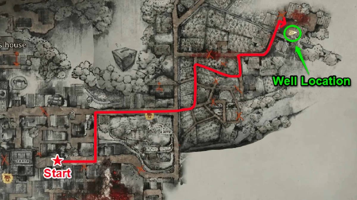 Иди на северо‑запад через поля к саду. Рядом с дверью в кладовую заметишь колодец. Потянись за ключом на краю маленького ящика с инструментами — и тут же вылезет босс Ара-Абаре.