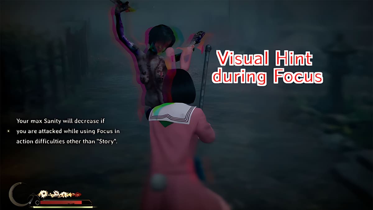 Когда зажимаешь Фокус (L2/LT/CTRL), полоса Рассудка (та самая — из цветков внизу слева) начинает таять. На сложностях выше «Истории» любое попадание во время Фокуса режет Рассудок. Заполнил шкалу — жми R1/RB/ЛКМ и делай Фокус‑атаку. Вид атаки зависит от оружия в руках. На всех сложностях, кроме «Истории», Вера лечит Рассудок — не жадничай, если шкала просела.