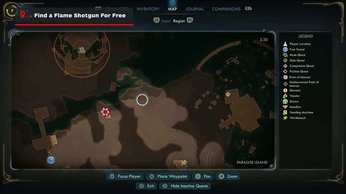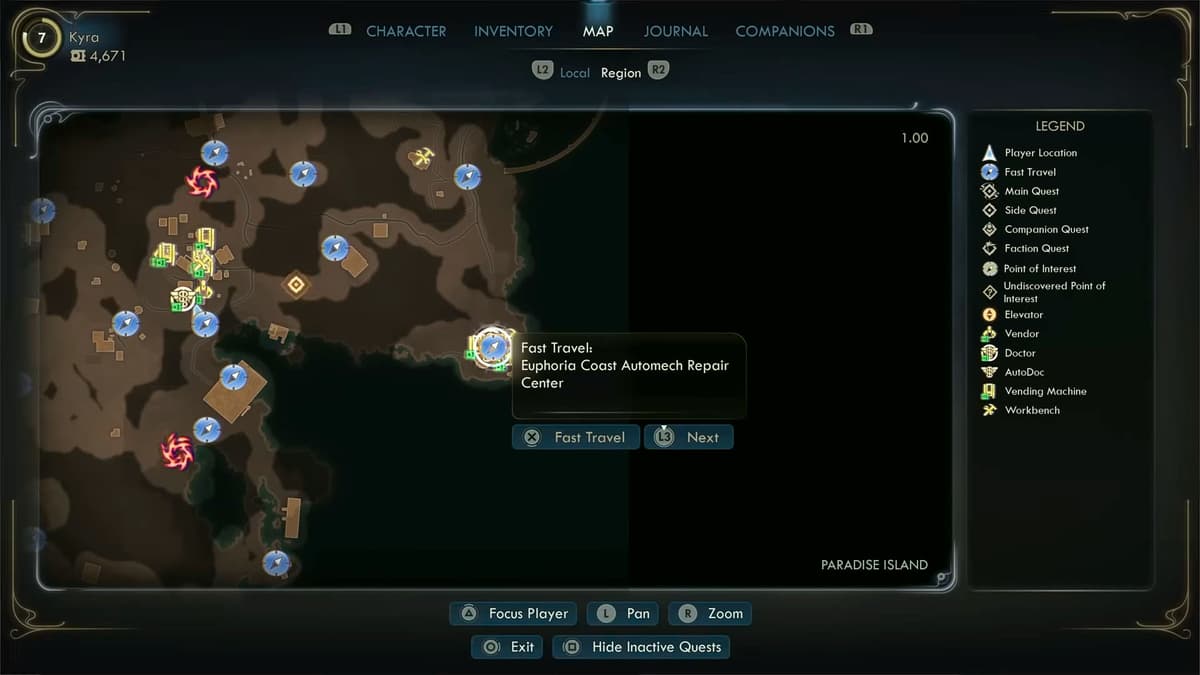 Начни побочную миссию «Эгида против миазмов» в Центре ремонта автомеханики на побережье Эйфории («Райский остров»).