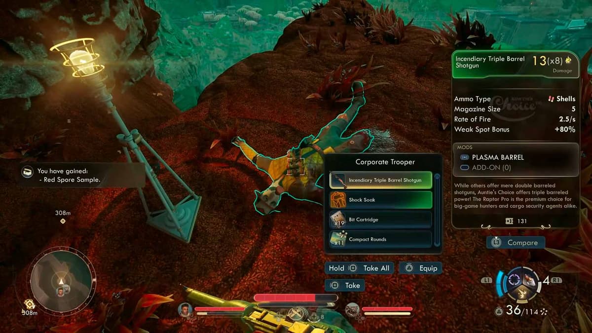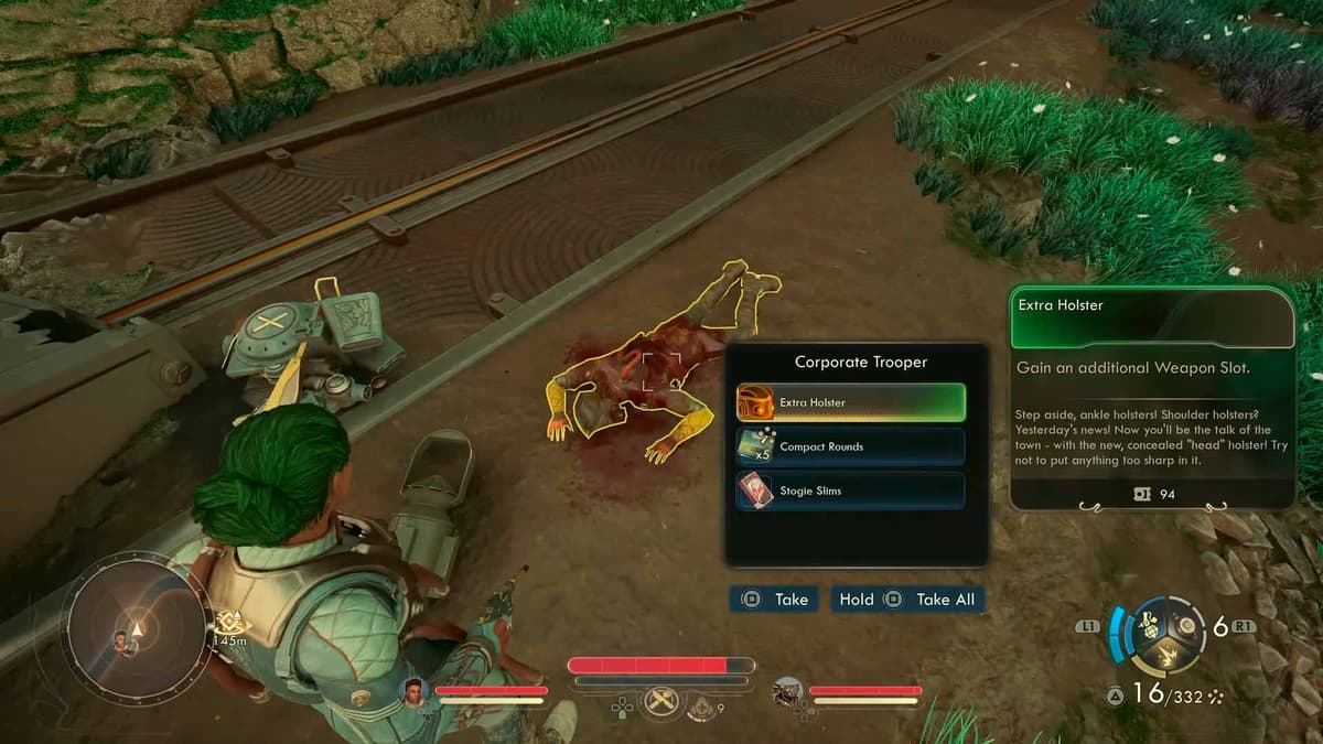 Чуть дальше найдёшь несколько тел с ресурсами, патронами и модом для шлема (и рецептом) на дополнительный слот оружия — полезно для гибких сборок.