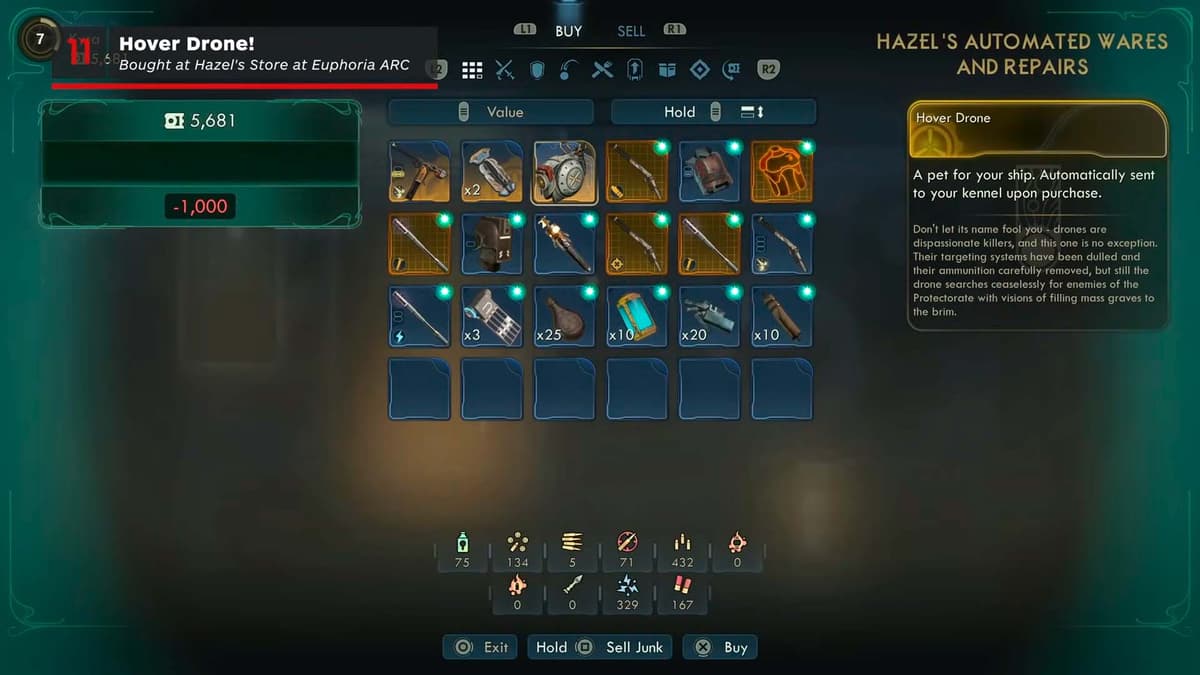В Центре ремонта у робота Автоматизированные изделия продаётся Парящий дрон за 1000 бит — это тоже питомец.