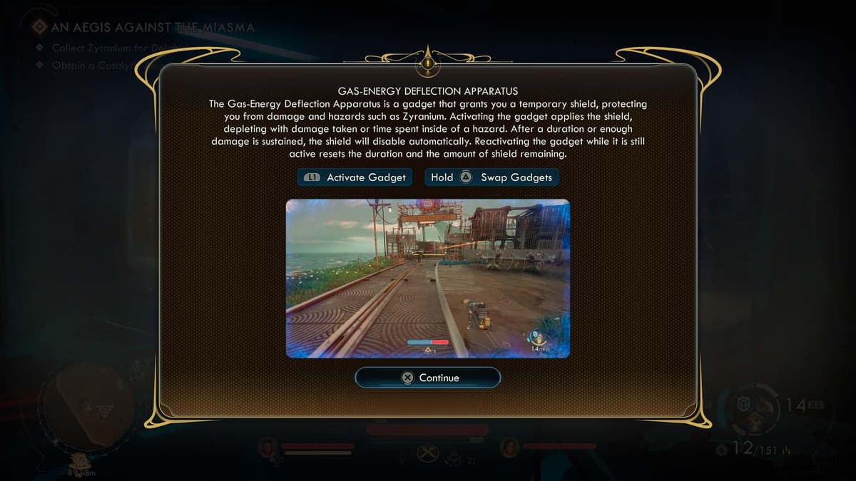 На локациях часто висят зелёные облака ядовитого Зираниума — выглядит как стена. Решение: Аппарат для отключения энергии газа — гаджет, включающий временный оверщит по кнопке «Гаджет» (Q на ПК).