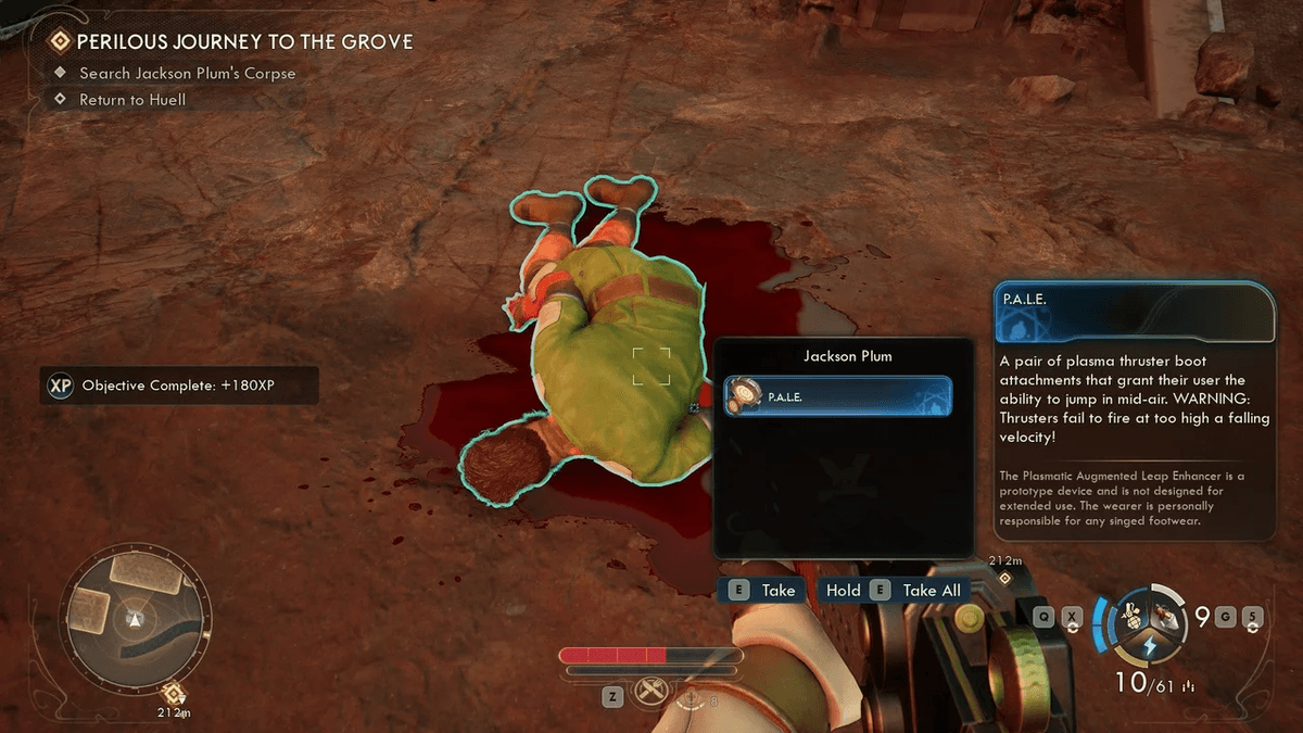 Когда доберёшься до Рощи, ты услышишь разговор, а затем перед тобой рухнет на землю один из его участников — это и есть бедняга Джексон. Грустно, зато прямо на его трупе ты найдёшь заветные ботинки. Чтобы узнать, как ими пользоваться, поднимись на вершину здания, с которого рухнул Плюс, и поговори с его собеседниками.