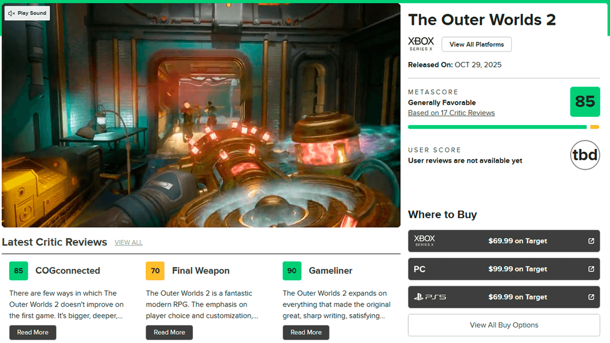 В сети появились восторженные обзоры The Outer Worlds 2 — игра получила 85 баллов на Metacritic.