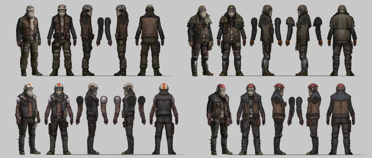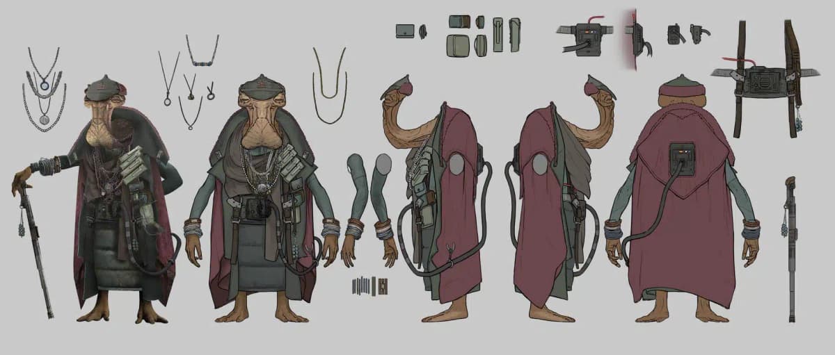 Похоже, разработчики Star Wars Eclipse не смогли уберечь свои секреты: в сеть утекли 13 концепт-артов персонажей. Среди них — представители знакомых рас вроде Родийцев и Ганганов (да, снова флэшбеки с Джар-Джаром), а также мусорщики в разных костюмах. Интересно, что два персонажа названы не по расе, а по именам — «Трэвис» и «Джотраааз Каммзззек».