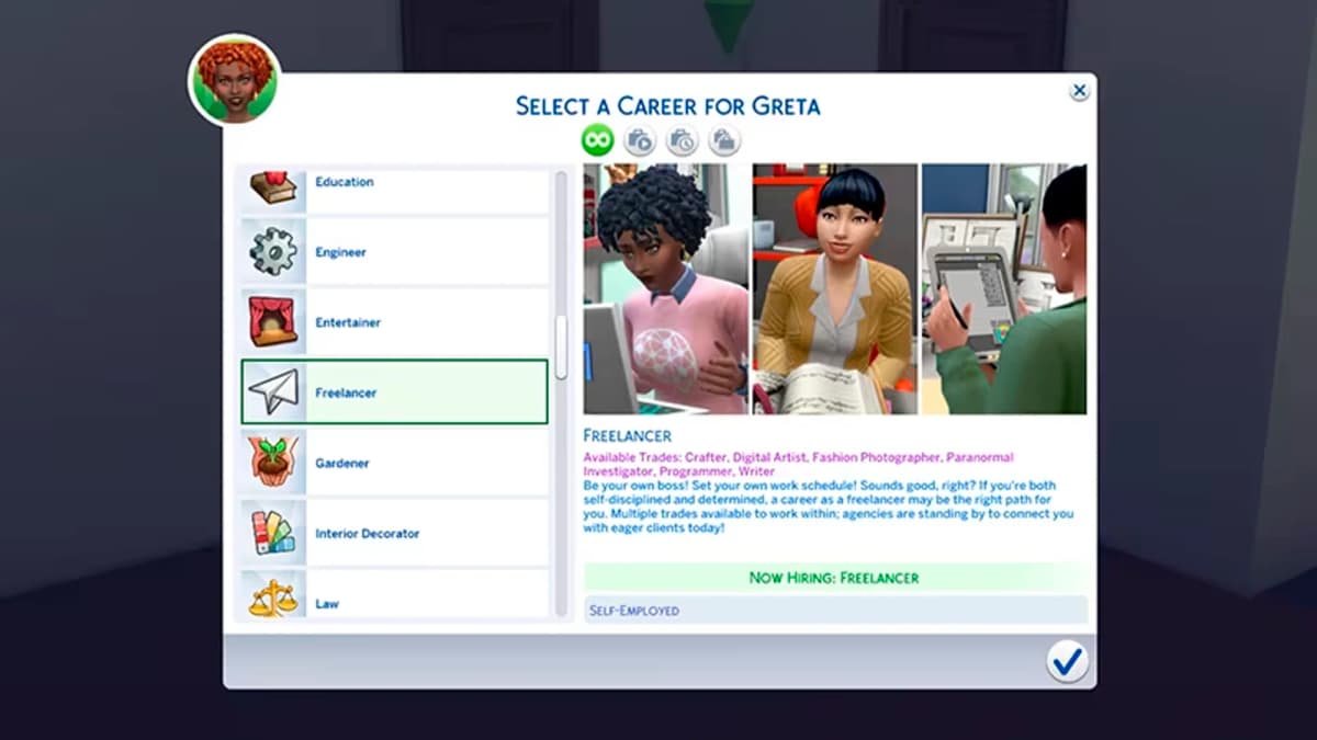Доступные фриланс-направления в базовой версии The Sims 4:
