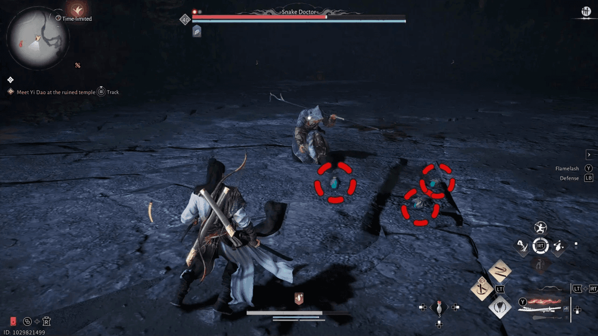 Поначалу Snake Doctor будет атаковать только в ближнем бою, и у каждого из ударов будет чёткий индикатор в виде красной вспышки. Парируй их, чтобы истощить его шкалу Ки, а затем используй добивающие приёмы.