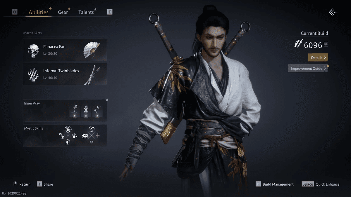 В бою советуем использовать меч Strategic Sword или парные Infernal Twinblades, а во второй слот поставить веер Panacea Fan. Клинки отличаются высокой скоростью и позволяют поддерживать натиск на протяжении всего поединка. А главная фишка этого веера — возможность восстановить здоровье.