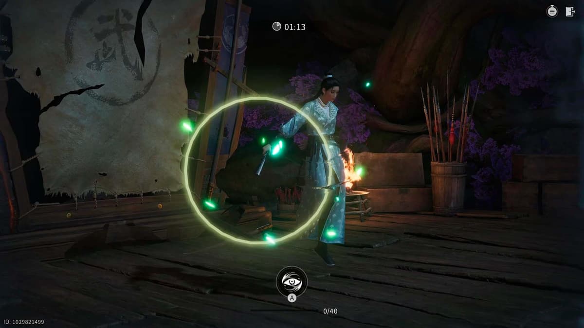 Когда герой наблюдает за мастером, вокруг его оружия появляются круги, которые постепенно сжимаются.