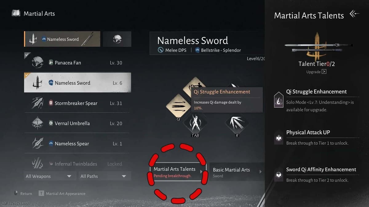 Зайди в меню Develop и открой один из уже изученных Martial Arts (талантов боевых искусств).