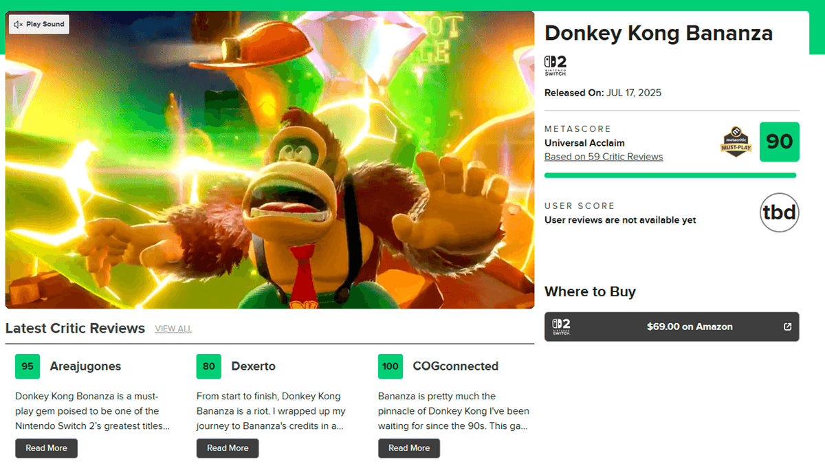 В сети появились полноценные обзоры Donkey Kong Bananza. Игра выходит 17 июля, но уже завоевала невероятные 90 баллов на Metacritic. Пресса чуть не единогласно заявляет, что эта игра «переопределяет» серию и задаёт новую планку для 3D-платформеров.