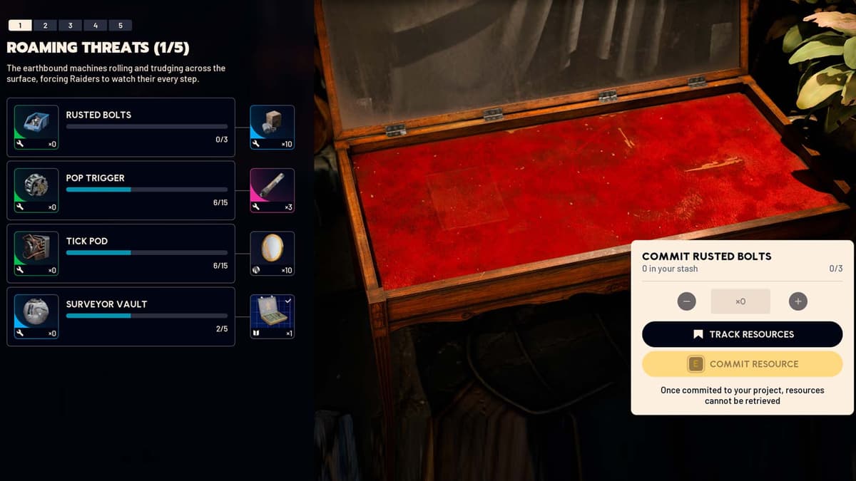 В проекте много этапов. По сути, это несколько страниц (фаз), и на каждой — свой список предметов, которые надо принести в убежище. Закрываешь страницу — получаешь награды. И так до финала.