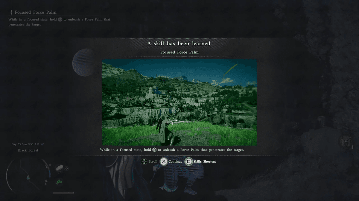 Отправляйся к Чёрному лесу и иди вдоль него по южной стороне. Там ты наткнёшься на странную зелёную стену. Провзаимодействуй с фигурой неподалёку, чтобы открыть новую силу Аксиомы.