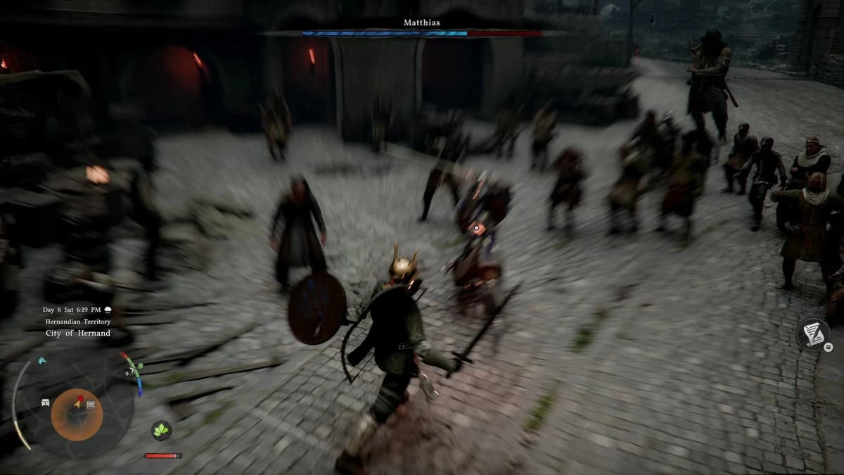 Знакомься: Матиас — рыцарь с двуручным мечом, который поджидает тебя во второй главе Crimson Desert. Для новичков эта встреча становится первым серьёзным испытанием. Никаких сложных фокусов — просто грубая сила, которой хватает, чтобы отправить в нокдаун даже опытных бойцов.