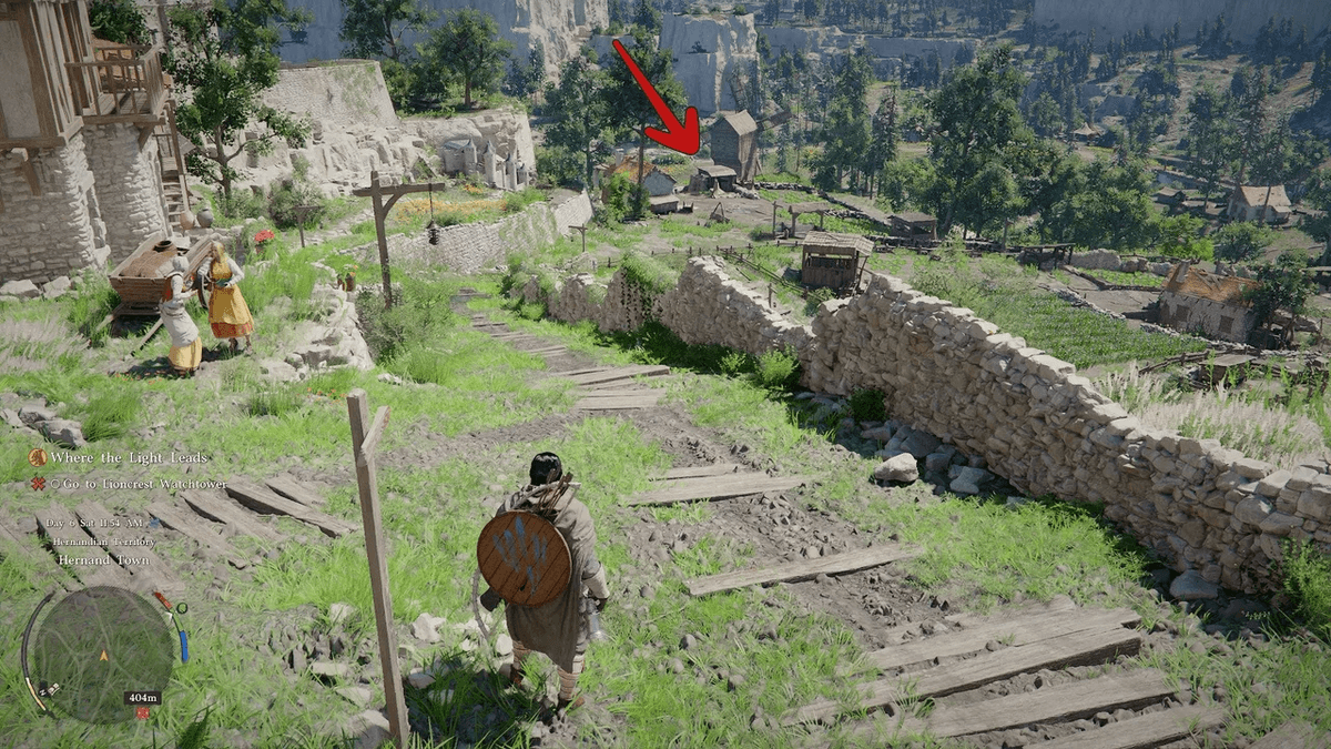 По прибытии в Эрнанд отправляйся к мельнице на юге от церкви. Там ты встретишь Эдмонда, который сообщит Клиффу, что готов заплатить за скот. Рядом с ним стоит торговец, у которого можно купить маску — сделай это и отправляйся красть животных.