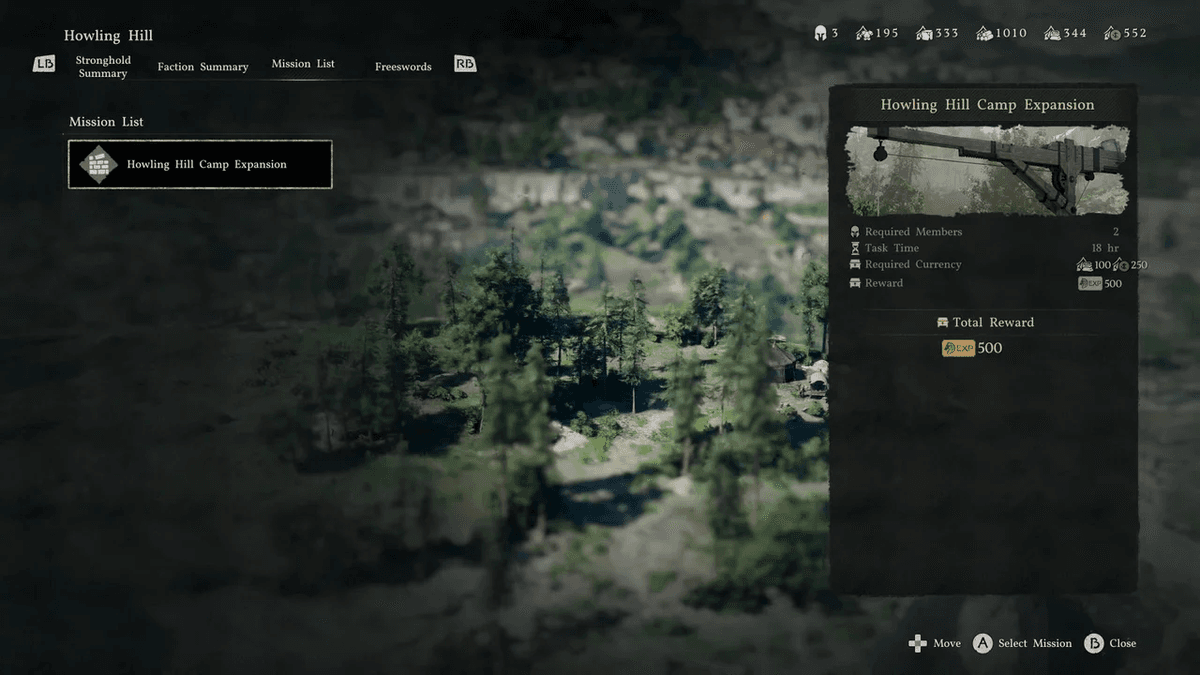 Выбери свободных наёмников (Люка и Рональда) и отправь их на задание «Оживление на холме». Его выполнение займёт 18 внутриигровых часов (или 2 часа реального времени).