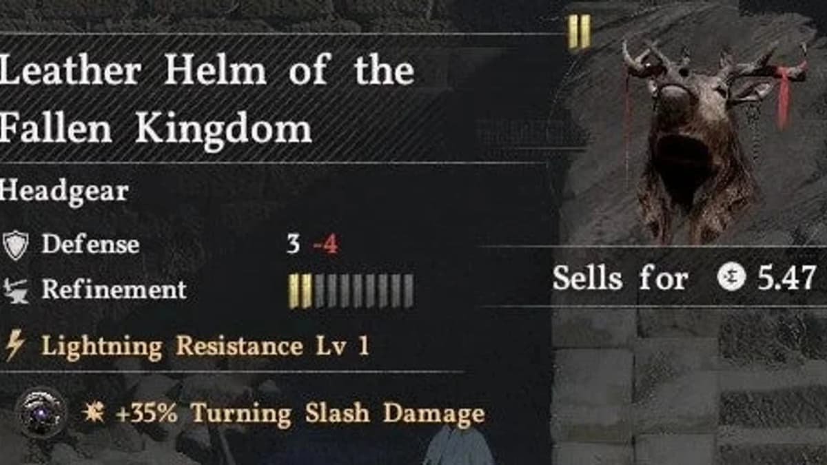 Там же найдёшь сундук с Кожаным шлемом Павшего королевства. В нём отличная Шестерёнка Бездны, которая увеличивает урон от Вращающегося удара на целых 35%.
