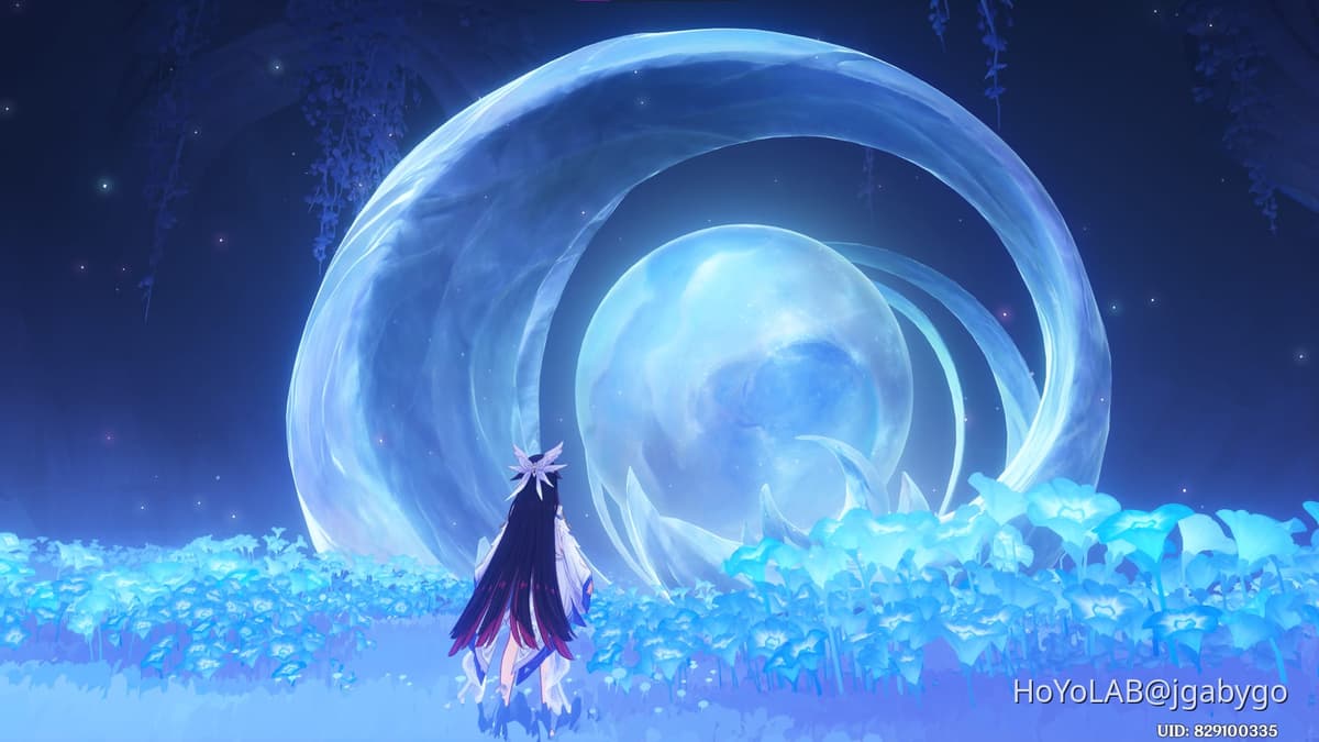 Наносит Гидро-урон и вызывает кольцо Гидро, которое следует за активным персонажем и бьёт каждые 2 секунды. За лунные реакции и лунный урон даёт стаки. На 3 стаках навык наносит дополнительный урон по той реакции, которая дала большинство стаков.