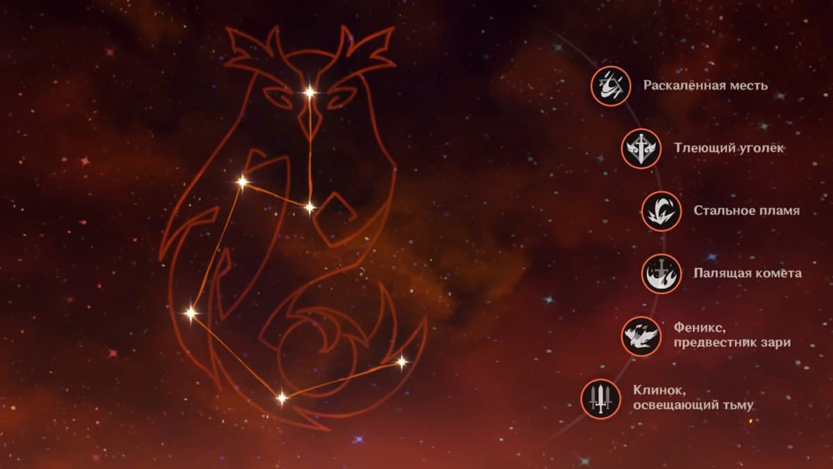 ![]() | Горящая алая ведьма ×4 | Усиливает Пиро-урон и реакции |