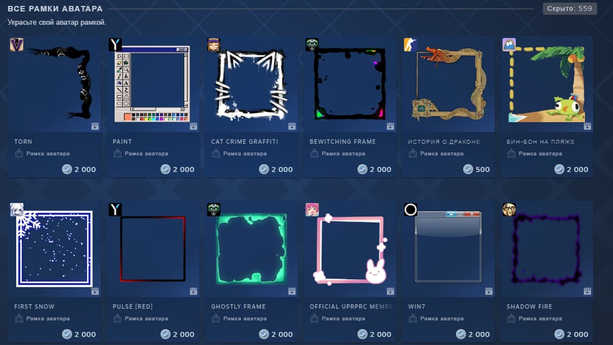 Рамки аватара и мини-профили Стим