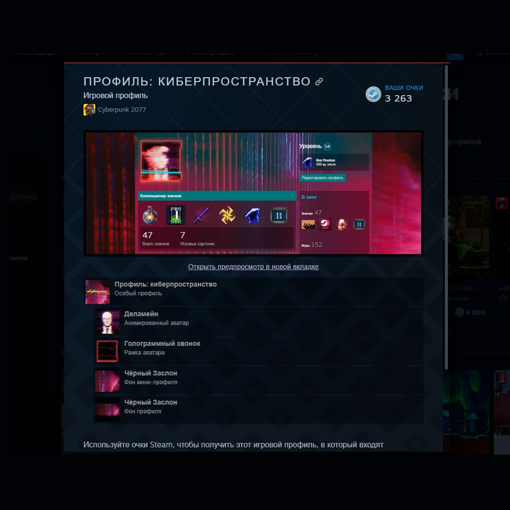 Тема профиля Стим
