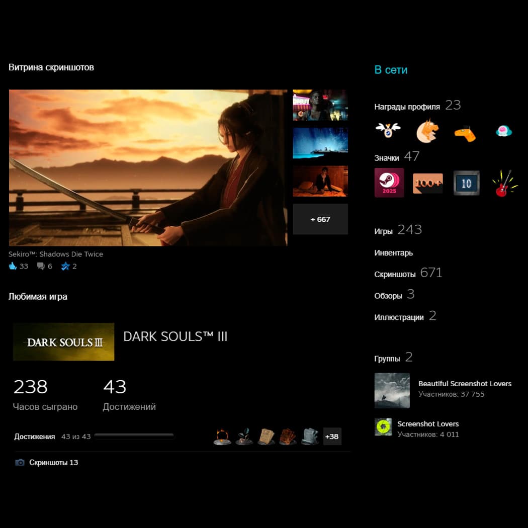 Как видишь, грамотно оформить профиль в Steam не так сложно. Сделай аватар и фон в одной теме, напиши короткое описание в разделе «О себе», добавь пару витрин, которые реально тебя отражают как игрока, и закрепи один подходящий значок. И помни, что в любом деле не стоит бросаться в крайности, а уж тем более, если это касается твоей личной странички в Стиме.