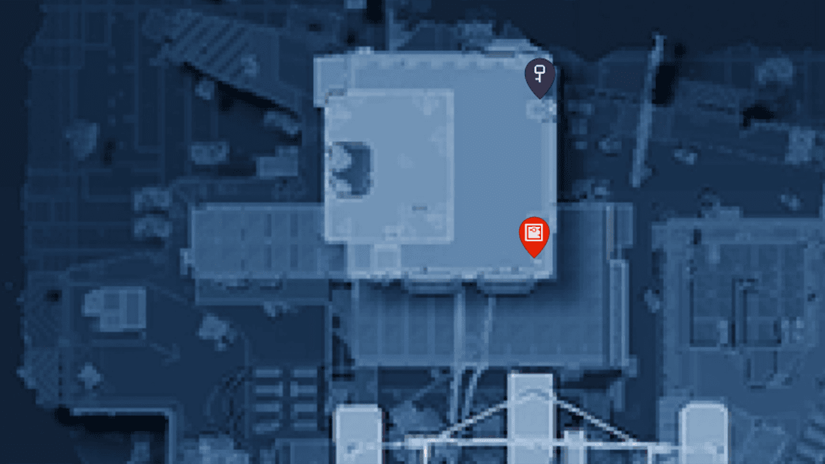 Запертая комната на верхнем этаже. Хотя эта зона и так кишит ценным лутом и крутыми пушками, самый крутой «хабар» спрятан в помещении, закрытом на специальный ключ — его можно найти на карте.