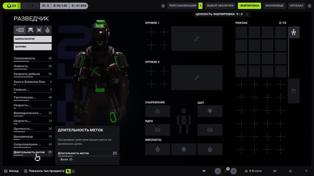 • Набор для выживания. Даёт бонус к скорости восстановления и длительности меток.
