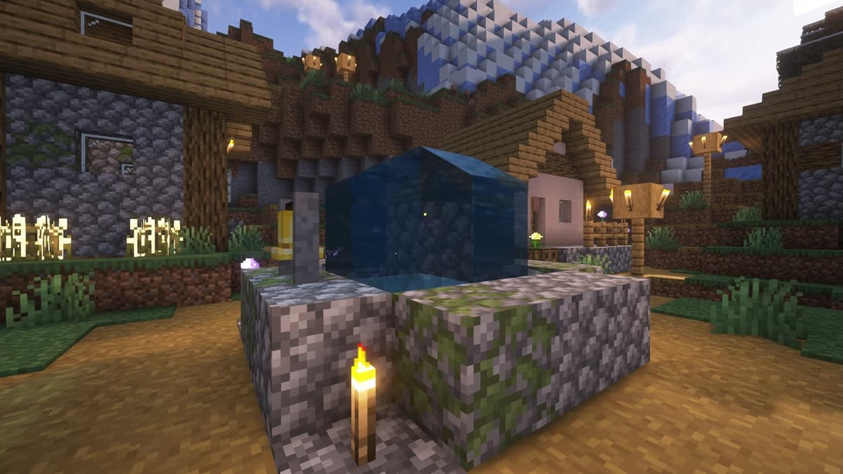 • Сделай источник, закрой его плитами или люками, оставь одно отверстие. Получится аккуратный колодец: подходишь, черпаешь воду и закрываешь, чтобы не падать внутрь каждый раз.
