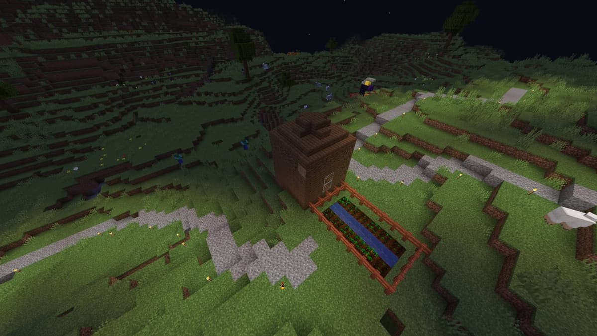 Иногда достаточно залезть повыше. Поднимись на холм, на дерево, на край горы. Если дом у тебя со столбом-меткой или подсветкой — есть шанс увидеть его издалека. Даже если не увидишь дом, увидишь биом. А биом — это уже направление.