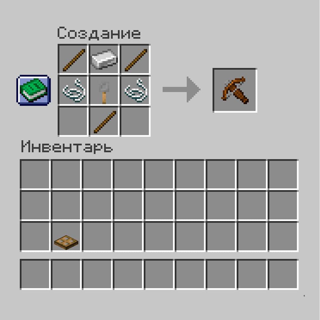 Материалы и пошаговый рецепт крафта арбалета в Майнкрафте?