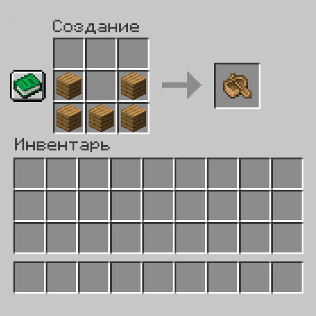 Что нужно для крафта: 5 досок одного вида + верстак.