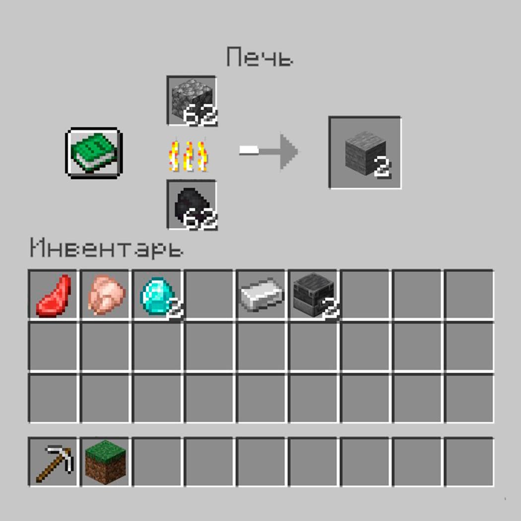 10–15 минут: делай гладкий камень, собирай 5 слитков, крафтится плавильная печь.