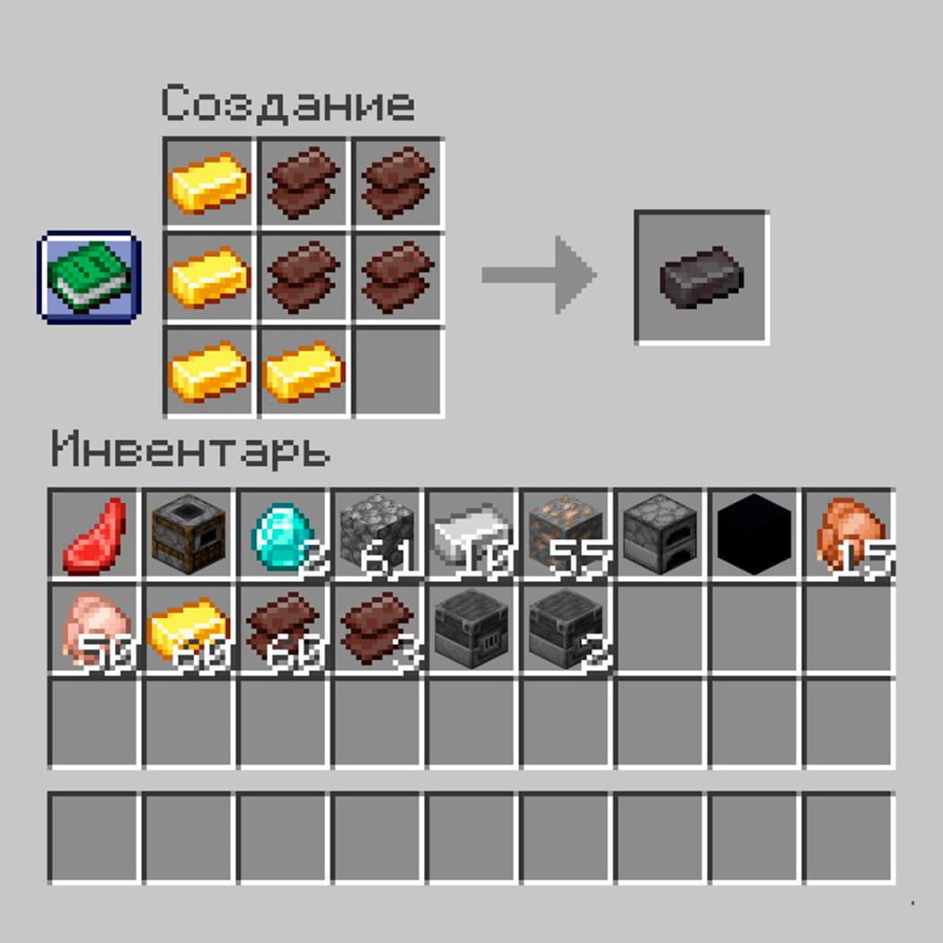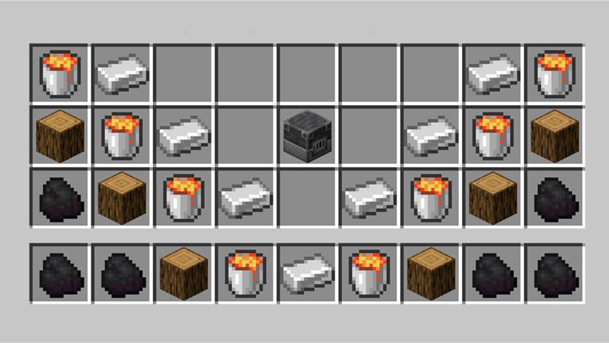 Верхний ряд: железный слиток — железный слиток — железный слиток