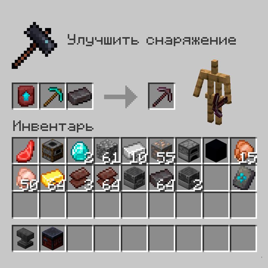 Когда открывается по игре: смысл появляется с первой десяткой сырого железа. До алмазки/незерита дойдёшь быстрее, если не держать руду в очереди.