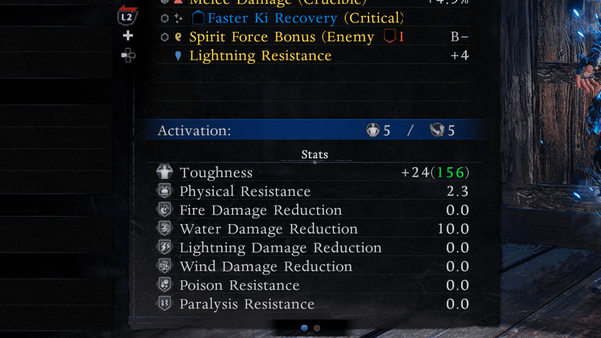 У некоторых предметов экипировки и эссенций душ в Nioh 3 есть специальные эффекты, которые активируются только при условии достижения определённого показателя какой-то характеристики. Внимательно изучай описания экипировки и прокачивай уровни с умом, соблюдая баланс между мощью оружия и эффективностью дополнительных способностей.
