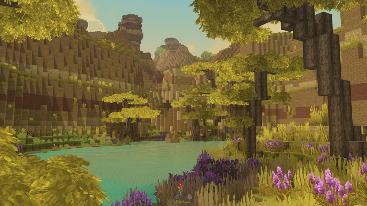 Визуально Hytale уверенно дистанцируется от Minecraft, несмотря на знакомую кубическую эстетику. Мир выглядит более детализированным и насыщенным цветами. Смена времени суток, погодные эффекты, звуковое оформление и музыка создают ощущение уюта. С разнообразием, впрочем, всё в порядке: тайтл умеет быть спокойным, почти медитативным, а затем внезапно тревожным, когда исследование заводит тебя в особенно опасные зоны.