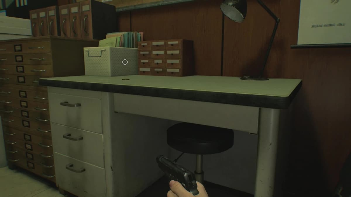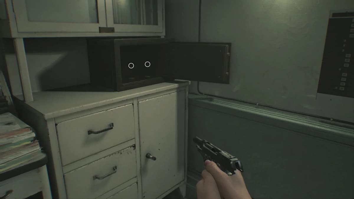 Ещё один сейф с тремя монетами. Код ищи в раздевалке на втором этаже (там, где ты впервые встретил Чанка — такого здорового монстра, который ломает стены). После того как заманишь его на первый этаж и убежишь, возвращайся в его логово. На одном из разрушенных шкафчиков лежит бумажка с кодом: R30, L10, R50