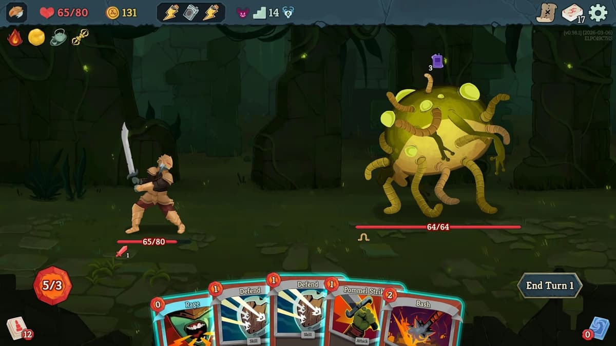 У тебя есть одно важное преимущество перед врагом: игра показывает, что именно он собирается сделать в свой ход. Над противником всегда висит значок намерения. По нему можно понять, будет ли он атаковать, накладывать ослабление или делать что-то ещё.