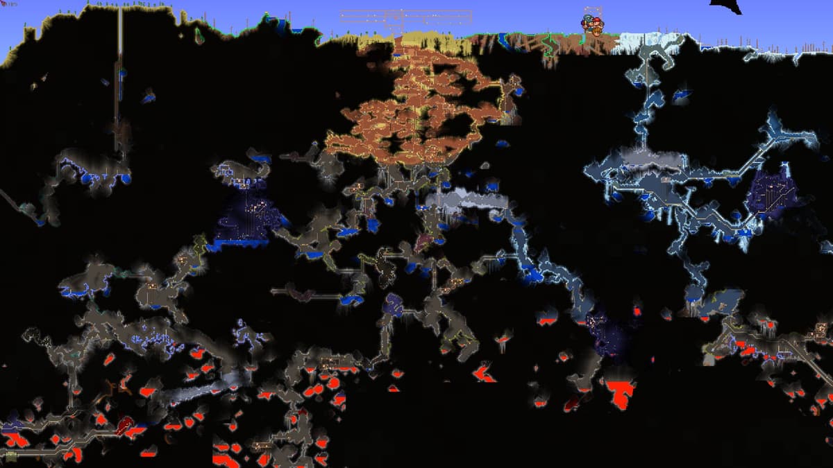 Если «осмотреться» вокруг, можно понять, что чуть выше, почти вне поля зрения, висят Летающие острова. Под ногами — огромные Пещеры, Подземные джунгли и Преисподняя. На одном из двух дальних концов карты тебя ждёт гигантское Подземелье с сокровищами. А где-то рядом расползается Порча — гниль, которая постепенно захватывает мир.